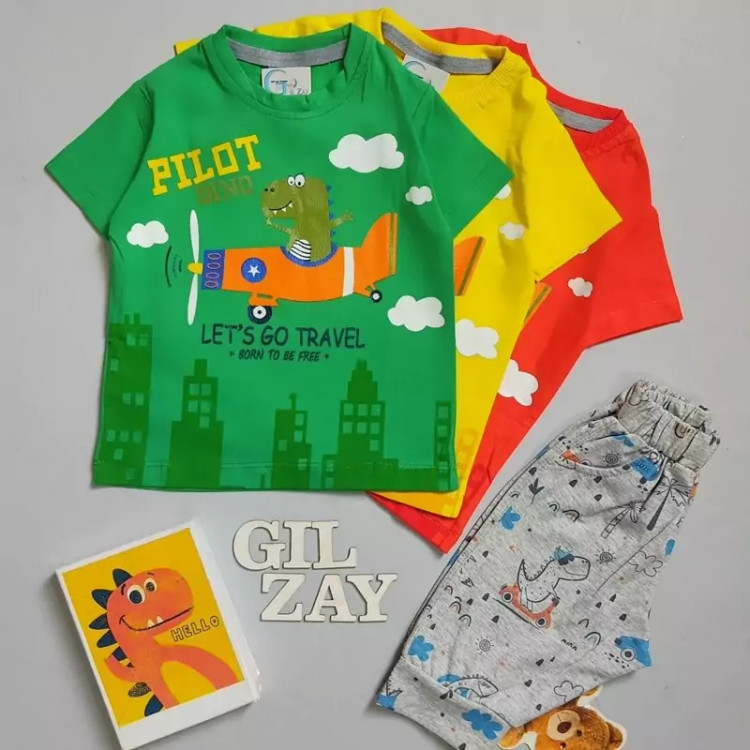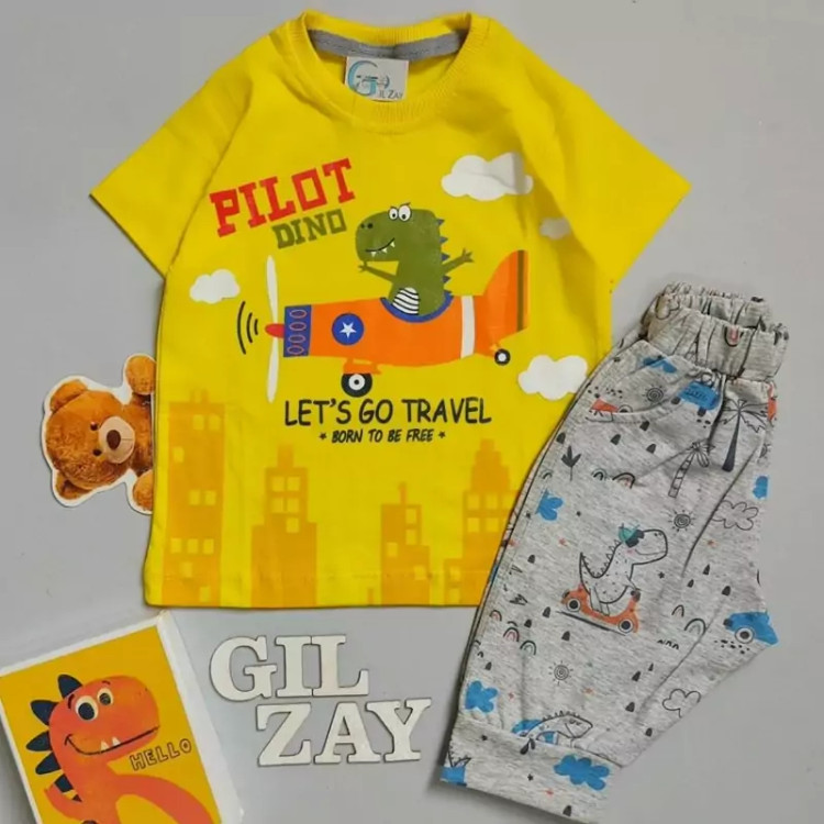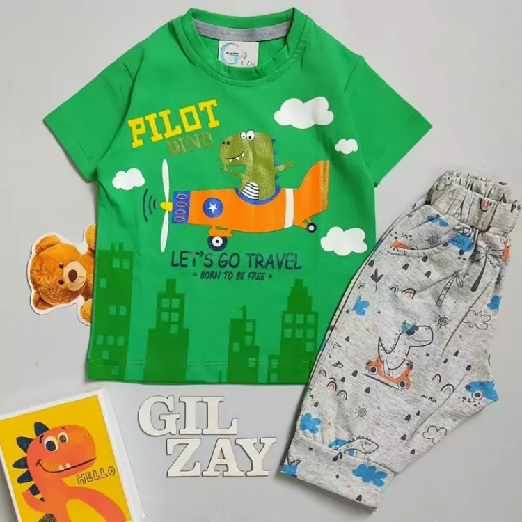 تیشرت و شلوارک بچگانه طرح دایناسور خلبان سایز 35