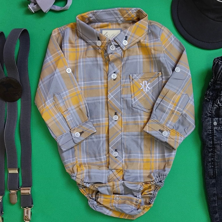 بادی بچگانه چهارخونه طوسی