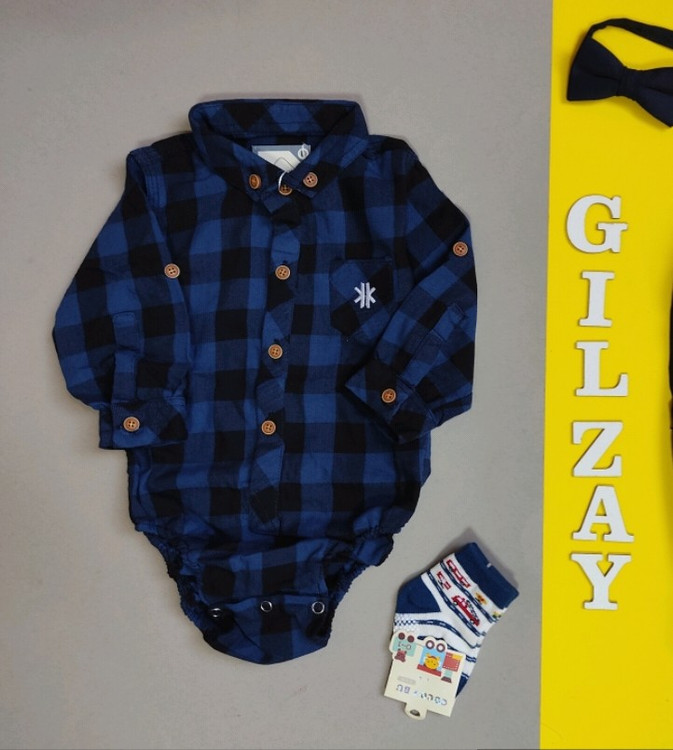 بادی تک چهارخونه آبی مشکی بچگانه