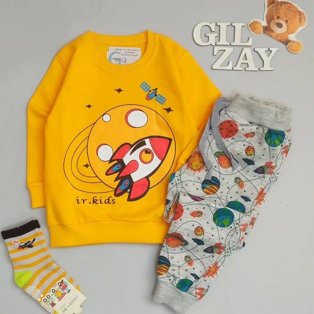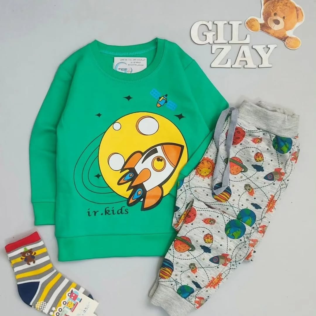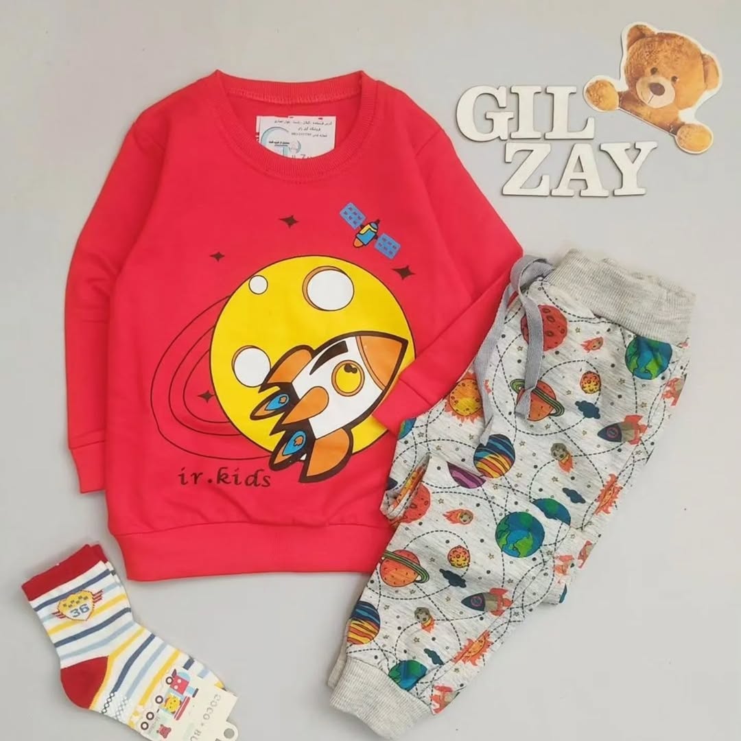 بلوز و شلوار خوشگل موشک وفضا سایز ۴۰/۴۵/ کیفیت فوق العاده تنخور بسیار شیک اسپرت پسرانه ودخترانه شلوار طرحدار دور مچ و یقه و زیر بلوز کشبافت بسیار باکیفیت و شلوار درجه یک سایزبندی سایز ۴۰ بلوز قد از سرشانه ۳۸ پهنا ۲۹ قد شلوار ۵۳ سایز ۴۵ بلوز قد از سرشانه ۴۴ پهنا ۳۳ قد شلوار ۵۷ #کلاهبچگانه#بلوزشلواربچگانه#بادیبچگانه#لباسکریسمس#لباسکودکانه#لباسپسرانه#لباسدخترانه#زیردکمه#لباسنوزادی#لباس_نوزادی#لباس_کودک#لباس_بچهگانه#پیراهنچهارخونه#بلوزشلواردایناسور#بلوزوشلوار_فضا #تم_فضانورد