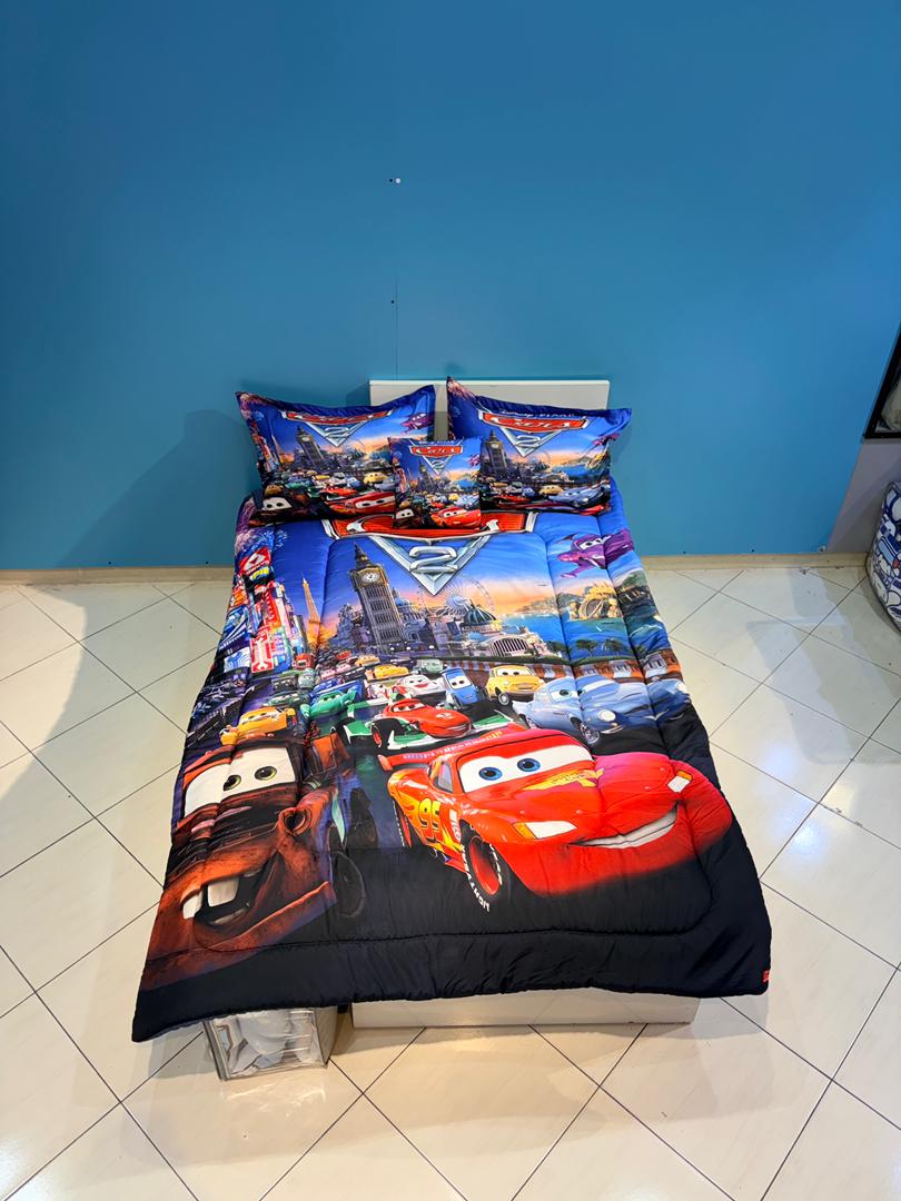 ست روتختی و لحاف پنج تیکه بچگانه طرح مک کوئین ماشینها