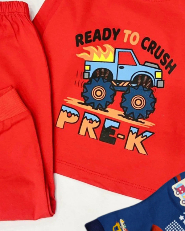 ست لباس راحتی بچگانه طرح ماشین رنگ قرمز
