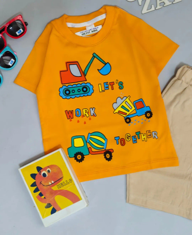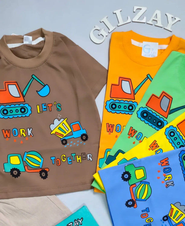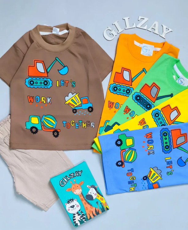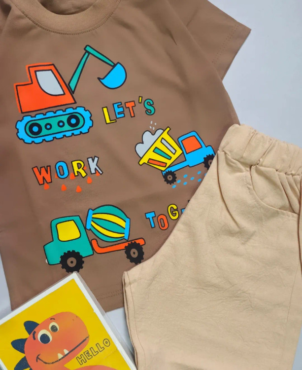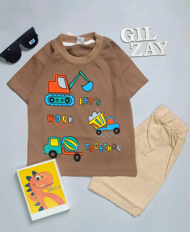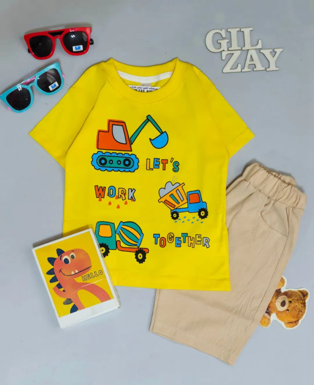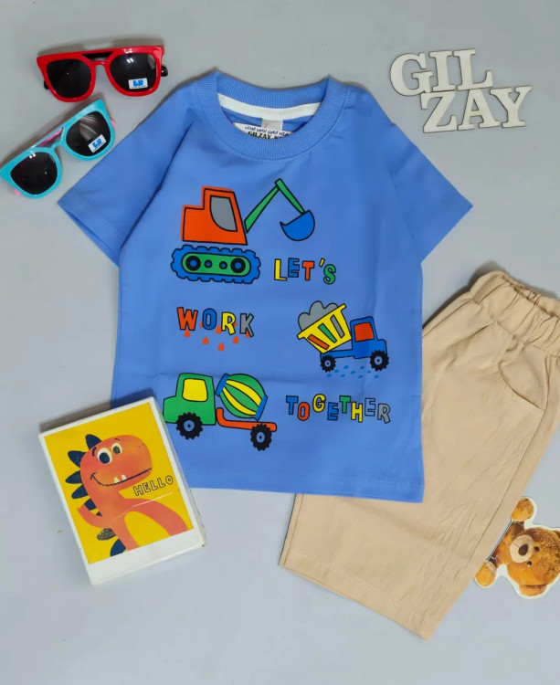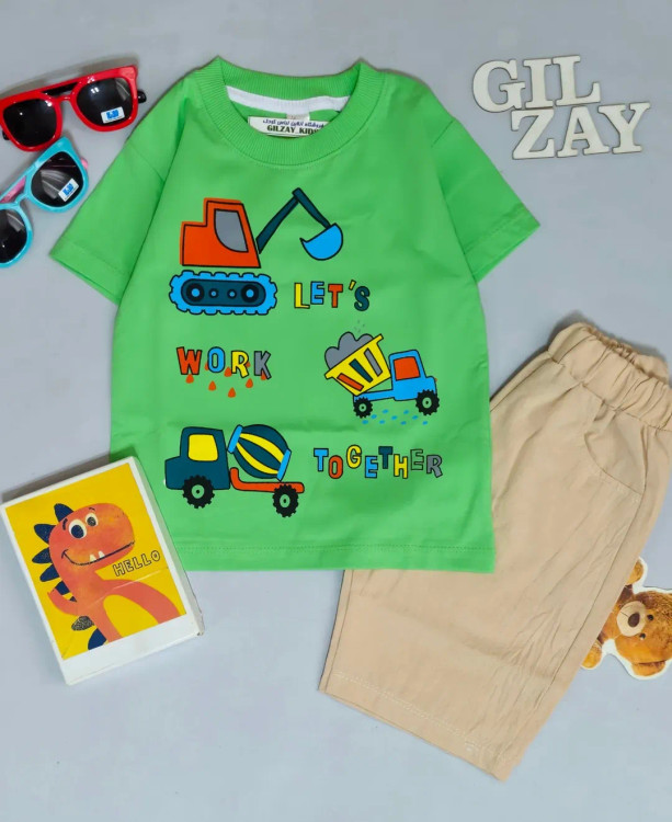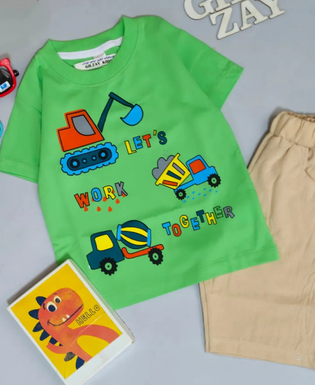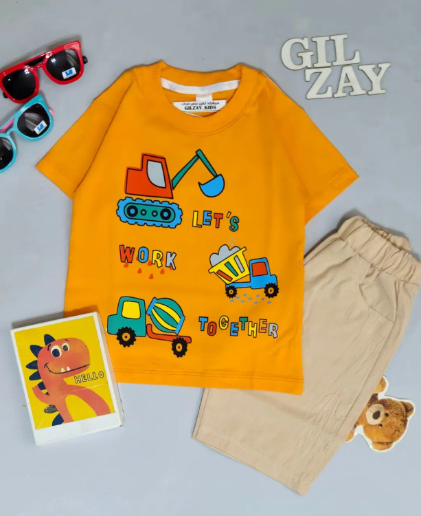 تیشرت و شلوارک بچگانه جرثقیل و ماشین سایز 40/45